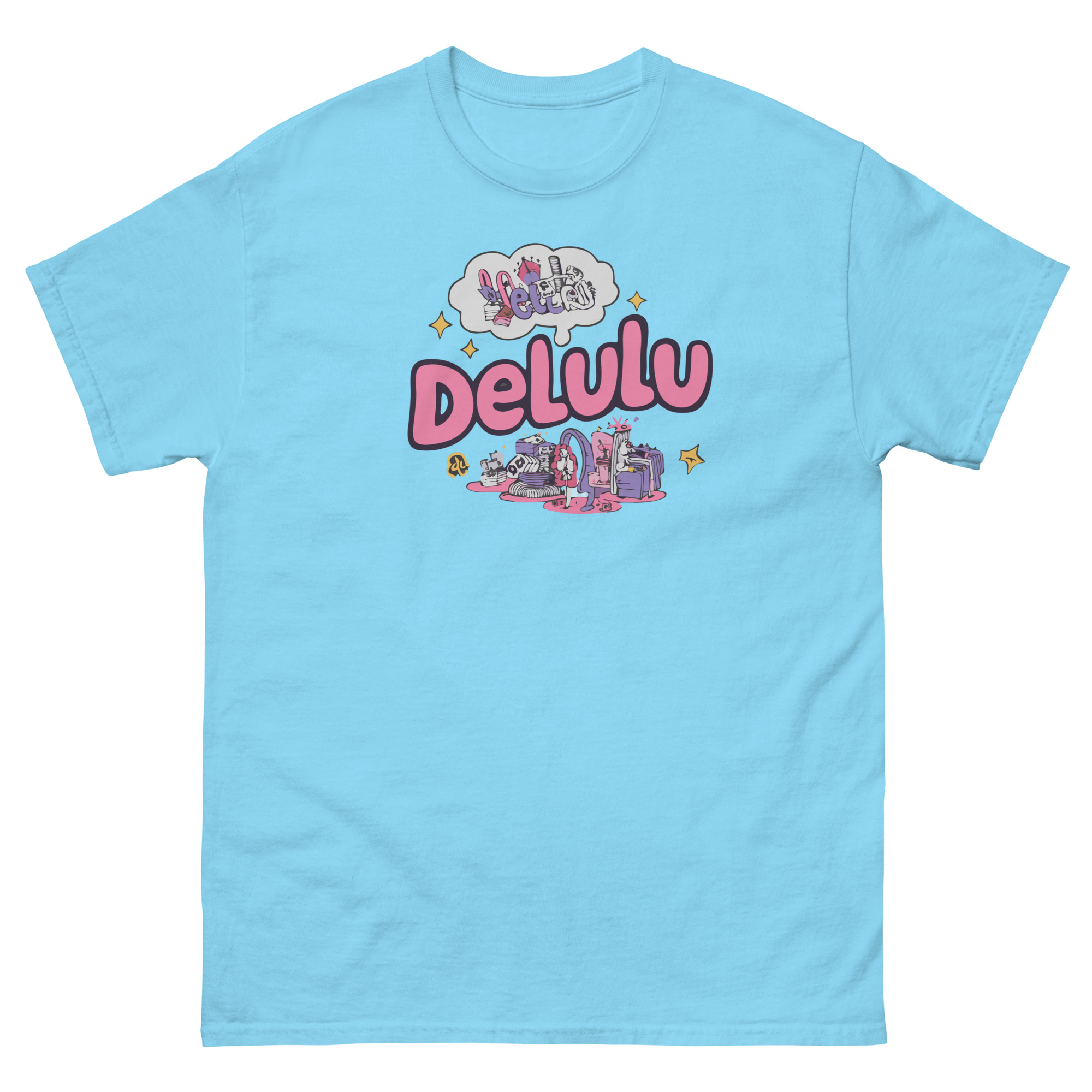 Unleash your playful side with this “Delulu Dreamer” graphic tee! Featuring a whimsical and imaginative design, this shirt is perfect for those who love to get lost in their daydreams. The vibrant pink lettering, surrounded by cute and quirky doodles, makes it a standout piece for any casual outfit. Whether you’re lounging at home or stepping out with friends, this tee adds a fun and unique touch to your wardrobe. Made from soft, high-quality fabric, it’s not only stylish but also comfortable for everyday wear. Embrace your inner dreamer and make a statement with this charming graphic t-shirt!