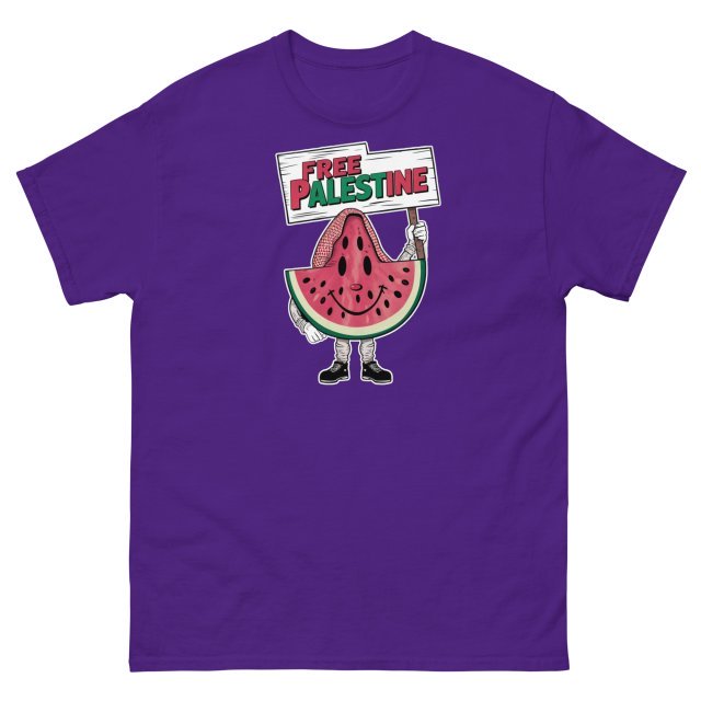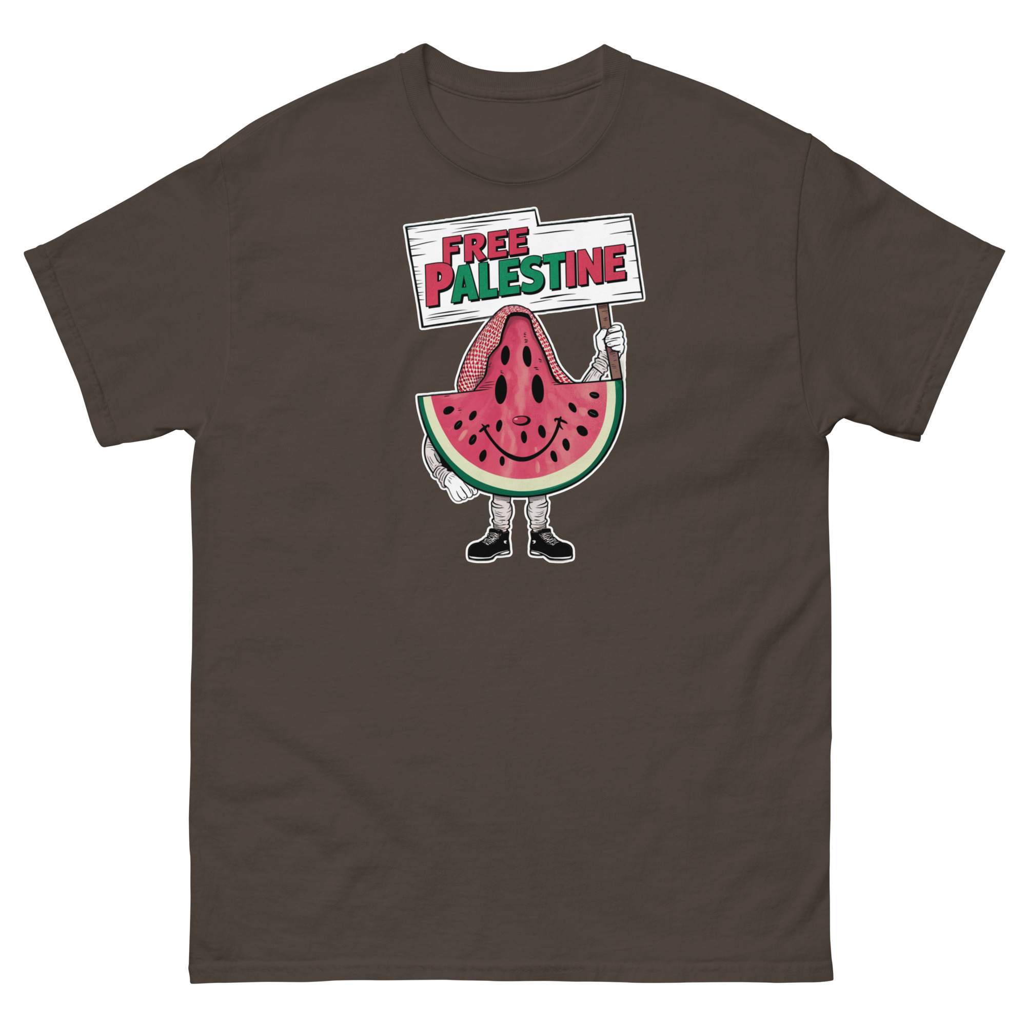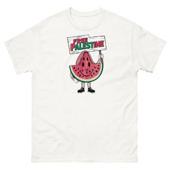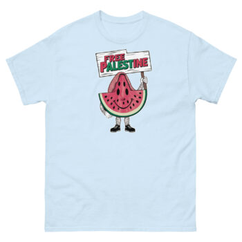 Show your support for Palestine with this unique and eye-catching “Free Palestine” T-shirt featuring the iconic Watermelon Boy design. This powerful and artistic illustration embodies solidarity and resilience, making it a perfect way to express your stance on the issue.